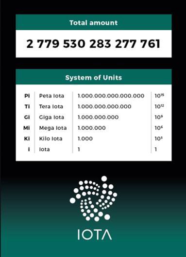Unités de mesure de la cryptomonnaie IOTA qui est une cryptomonnaie au stock borné puisque toutes les unités monétaires ont été émises.